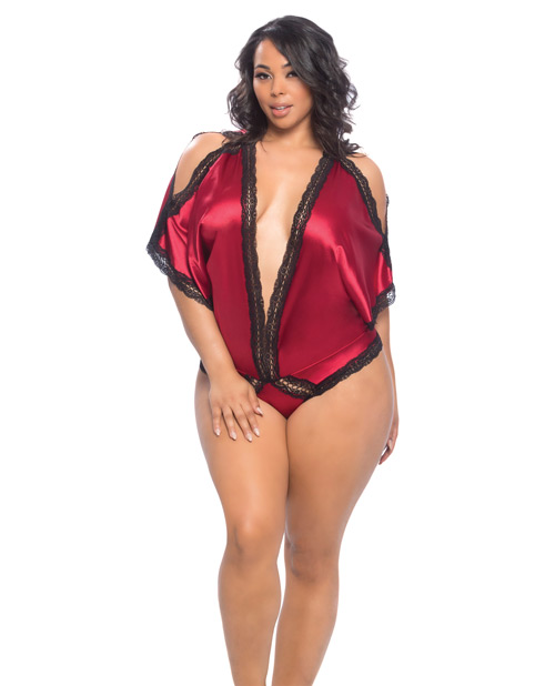 Draped Satin Teddy with Lace Edges and features back and shoulder openings.