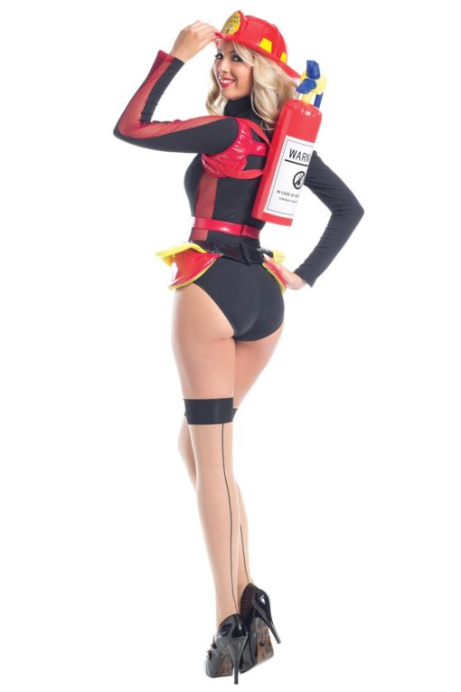 4 Piece Hearts Afire. Long sleeved romper with zippered back and mesh sides, front garter straps, suspender straps, hip pads.