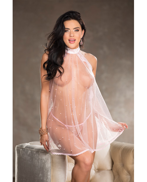 Beautiful sheer halter babdyoll pearl net set. Comes with g- string too!